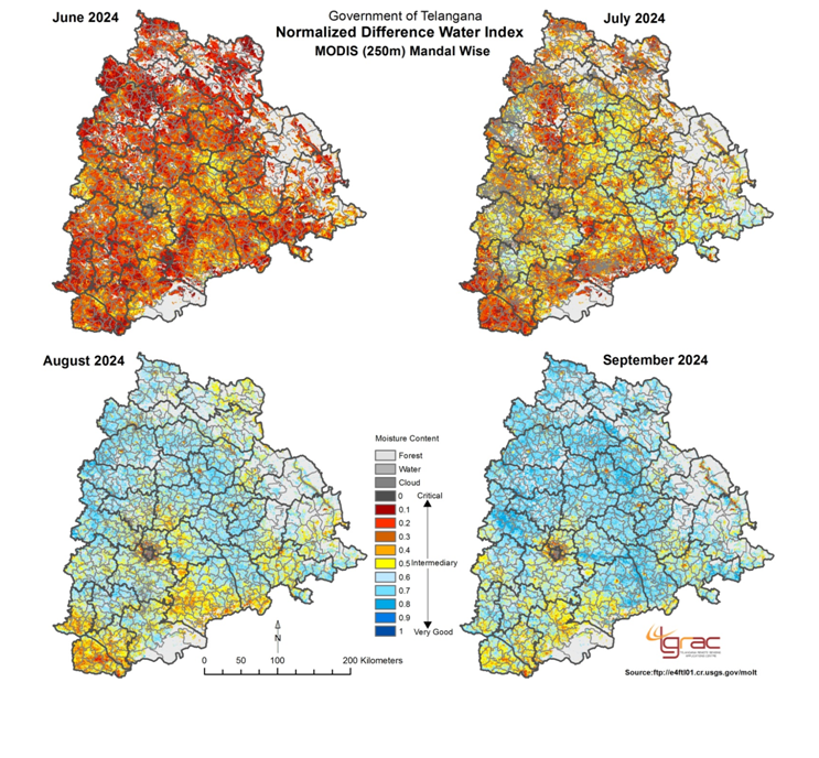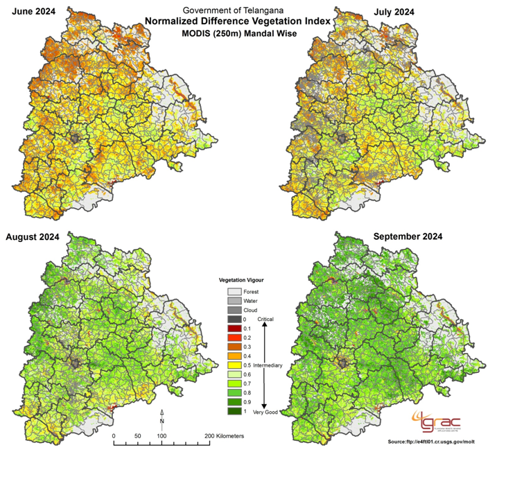 Data Sets:- MODIS (250m, 16 day composite) and Resourcesat-2 AWiFS data for entire Telangana.