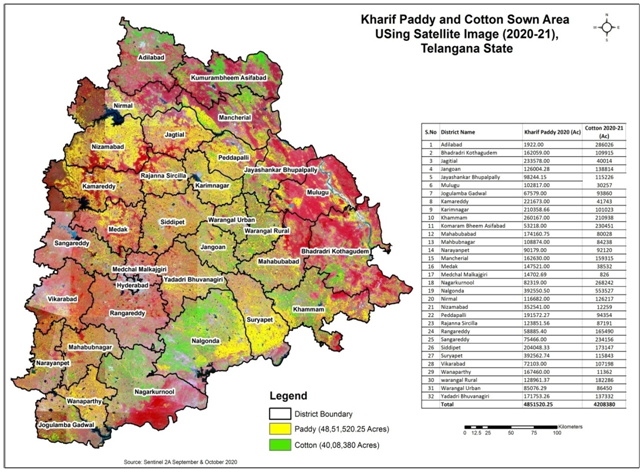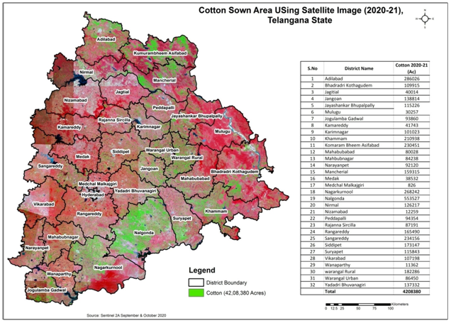 - Kharif Cotton: Acreage estimation of Cotton in major cotton growing districts of Telangana for State/ District forecast