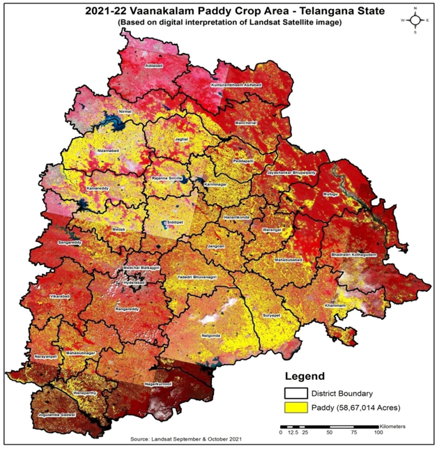 - Rabi Rice: Acreage estimation of Rabi Rice in districts of Telangana for National State Forecast and State District Forecast-NSF & SDF