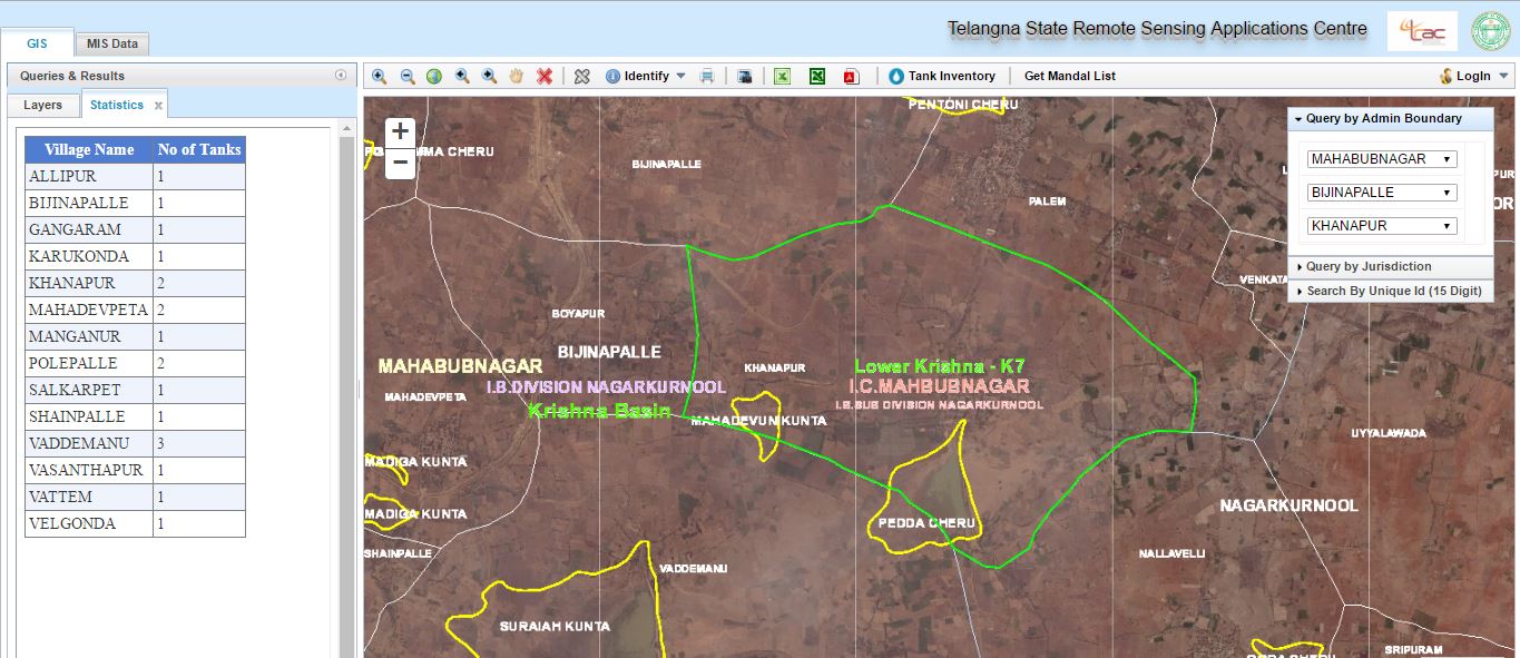 Development of web based Tank Information System for all tanks in Telangana Query and reporting facility through compilation of natural resources information related to all tanks of catchment and command areas
