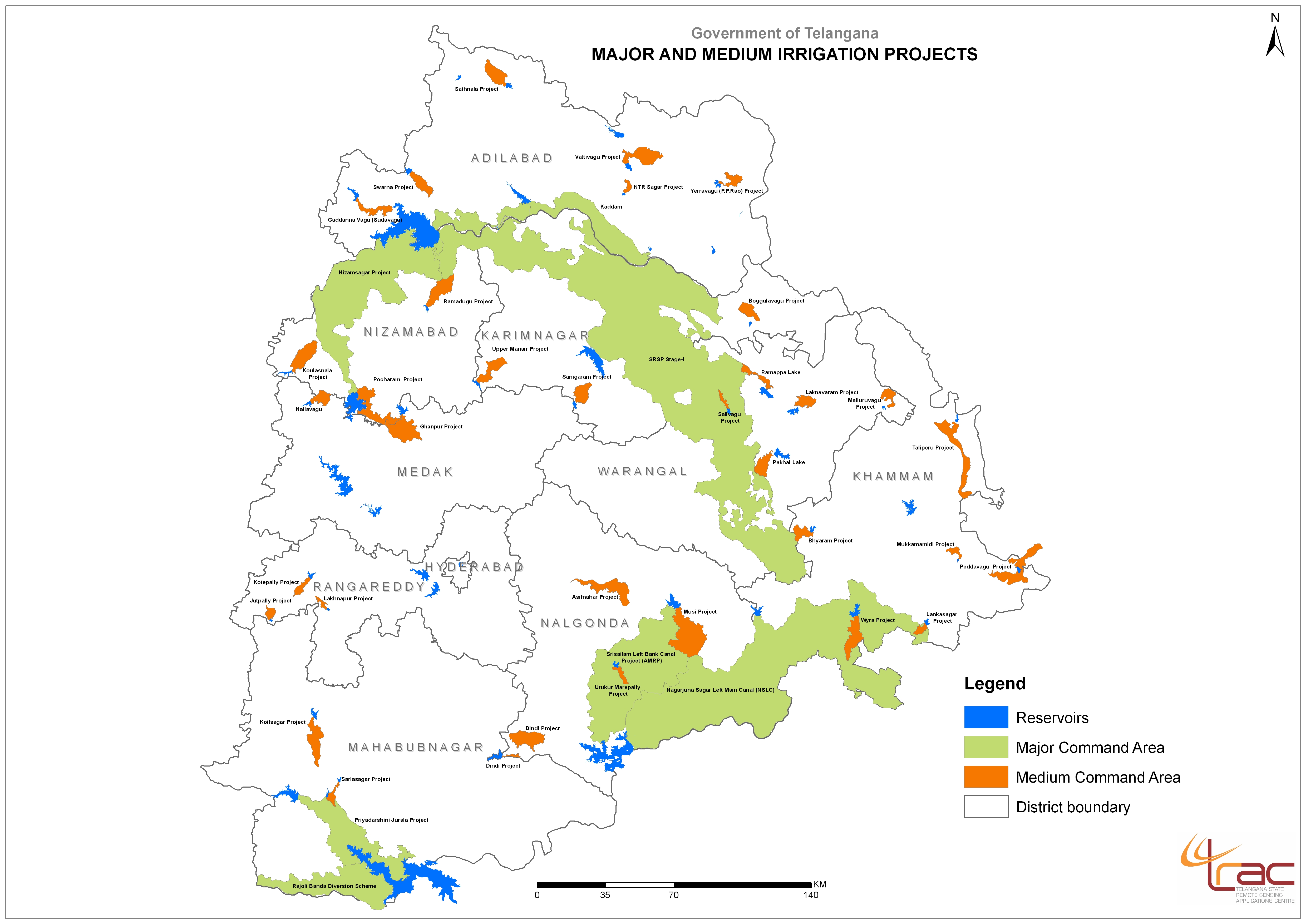 Study Area :7 major and 34 medium irrigation projects of TS