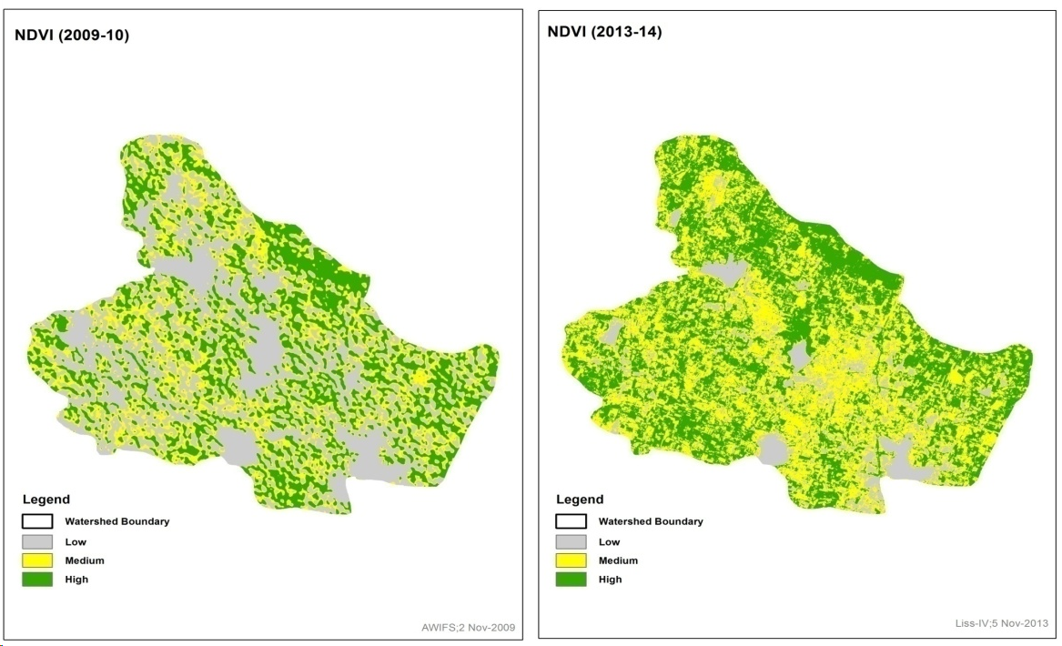 The main objective of the study is to carry out the impact assessment of watershed implementation Programme (WDC-PMKSY 2.0) projects using geospatial technologies by comparing the pre and post dated satellite Data using on screen interpretation and estimation of increase / decrease in the Vegetation Vigour using NDVI techniques.
