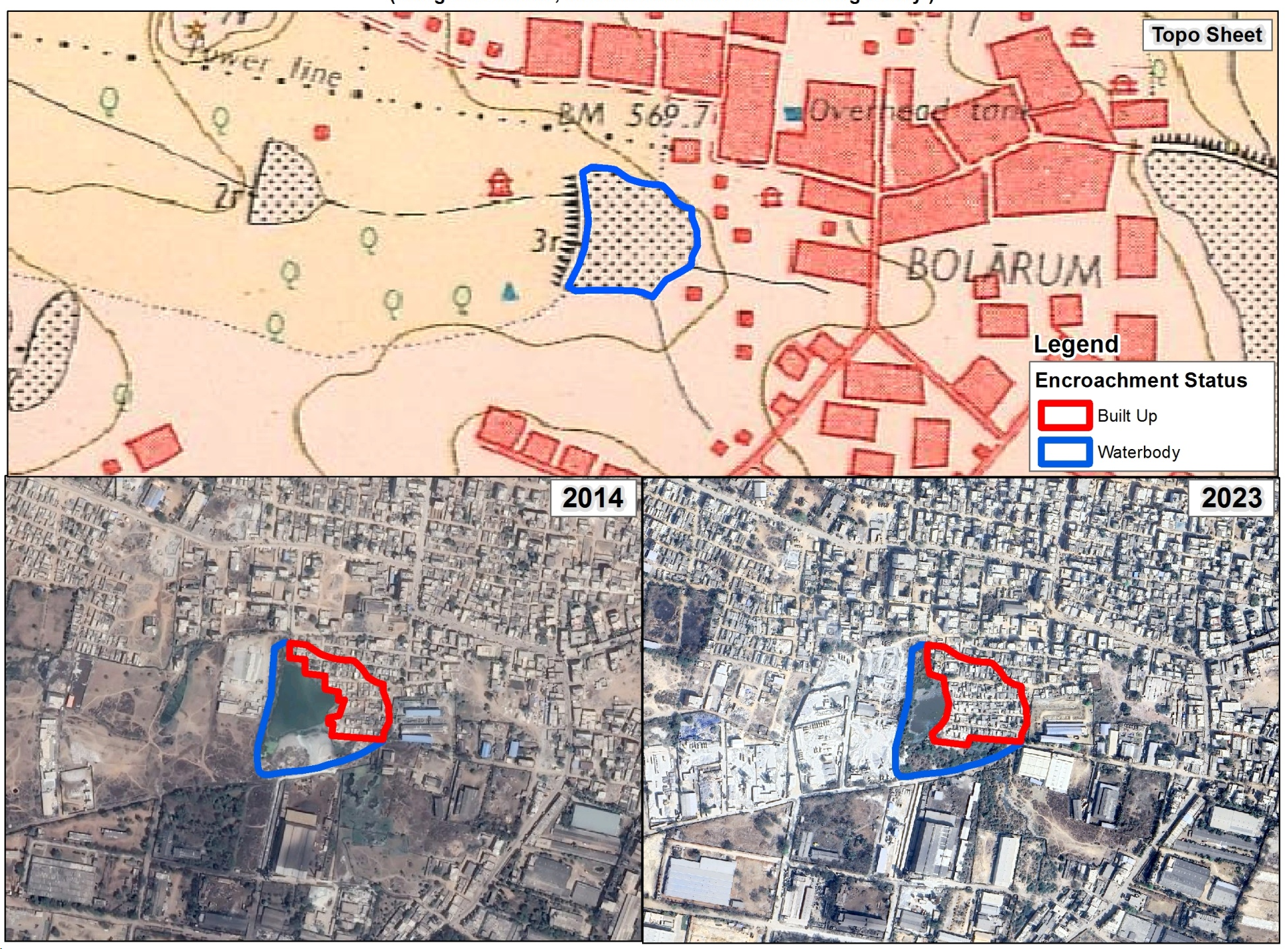 The Waterbodies belonging to Telangana state are being mapped by making use of Cadastral (Before 1940s), Toposheets (1940s to 1970s) and updation of new tanks and status of encroachment using temporal satellite data of 2014 and 2023 years.